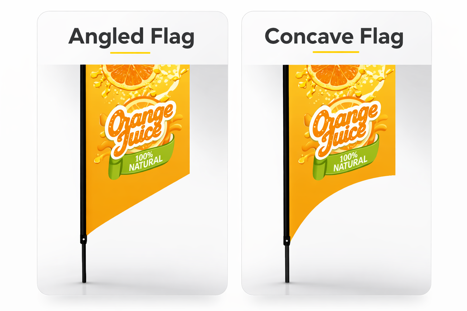 The curved “feather” profile catches wind and creates natural motion. Movement = attention. Great when you want to pull people in from across the street.